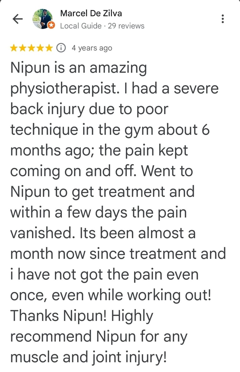 A truly talented team of physiotherapists. I could arrange a session in a few hours to get treatments for my excruciating back pain